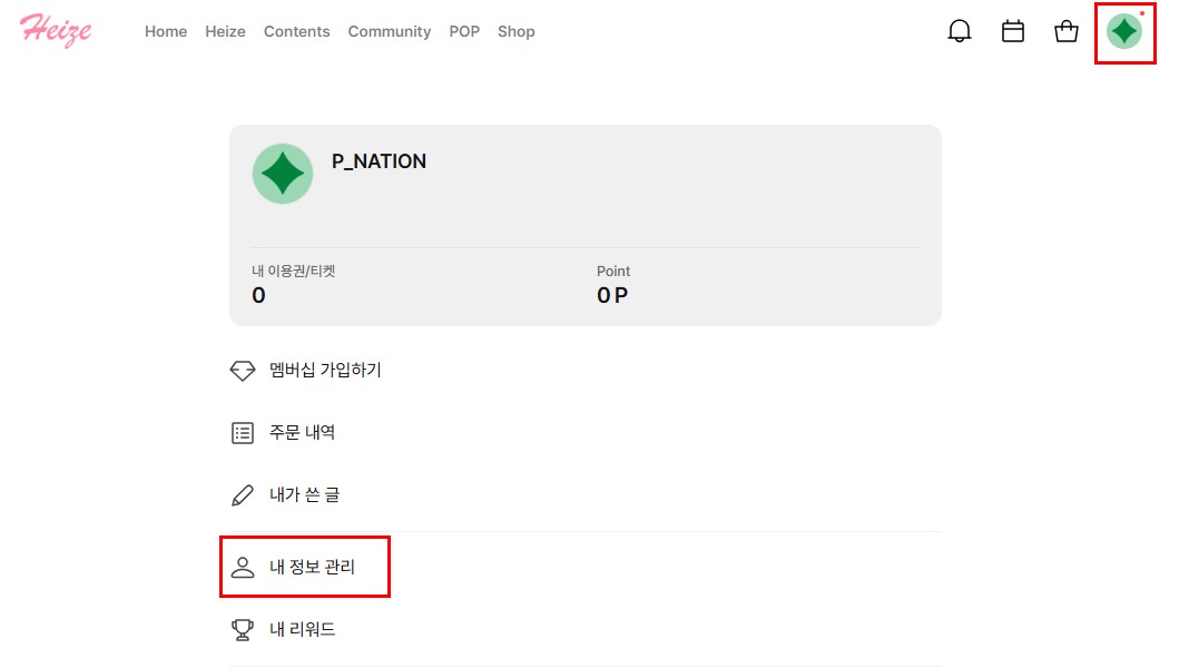 - 헤이즈(Heize) 공식 팬 커뮤니티 우측 상단의 프로필을 클릭 후 닉네임 아래 이메일 주소 확인